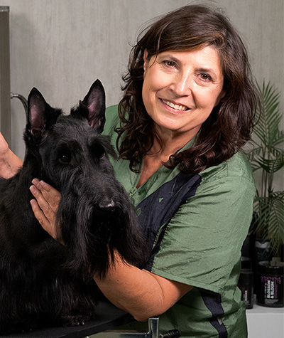 - Expert in hand-stripping, coat preservation & Scottish Terriers.