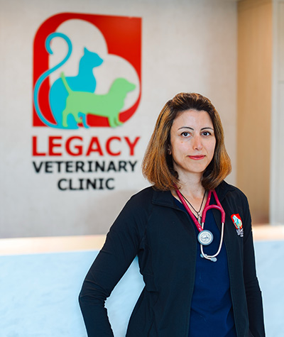 At Legacy Veterinary Clinic, my goal is to provide a stress-free, integrative environment where pets receive both conventional and alternative care options. I look forward to meeting you and your pets, and helping them live their healthiest, happiest lives.